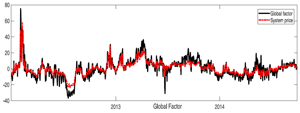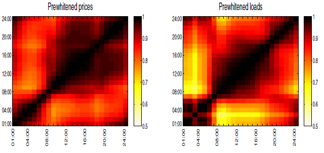 Equilibrium electricity spot prices and loads are often determined simultaneously in a day-ahead auction market for each hour of the subsequent day. Hence daily observations of hourly prices take the form of a periodic panel rather than a time series of hourly observations. We consider novel panel data approaches to analyse the time series and the cross-sectional dependence of hourly Nord Pool electricity spot prices and loads for the period 2000–2013. Hourly electricity prices and load data are characterized by strong serial long-range dependence in the time series dimension in addition to strong seasonal periodicity, and along the cross-sectional dimension, i.e. the hours of the day, there is a strong dependence which necessarily has to be accounted for in order to avoid spurious inference when focusing on the time series dependence alone. The long-range dependence is modelled in terms of a fractionally integrated panel data model and it is shown that both prices and loads consist of common factors with long memory and with loadings that vary considerably during the day. Due to the competitiveness of the Nordic power market the aggregate supply curve approximates well the marginal costs of the underlying production technology and because the demand is more volatile than the supply, equilibrium prices and loads are argued to identify the periodic power supply curve. The estimated supply elasticities are estimated from fractionally co-integrated relations and range between 0.5 and 1.17 with the largest elasticities being estimated during morning and evening peak hours.